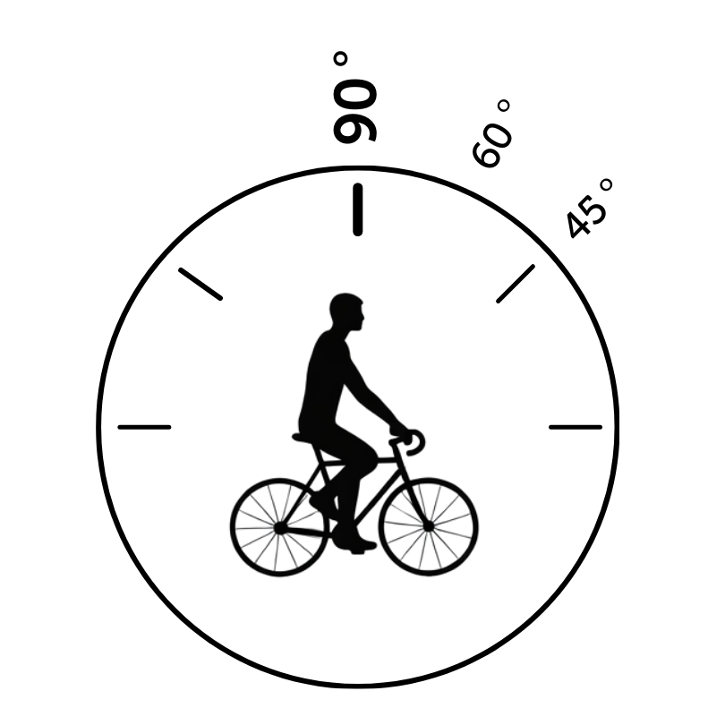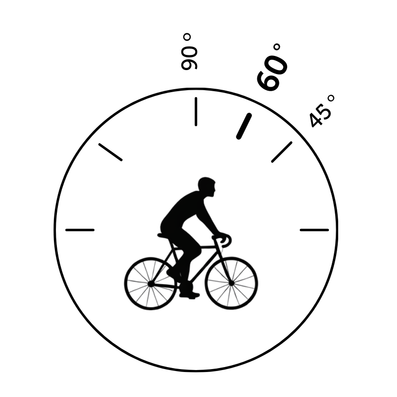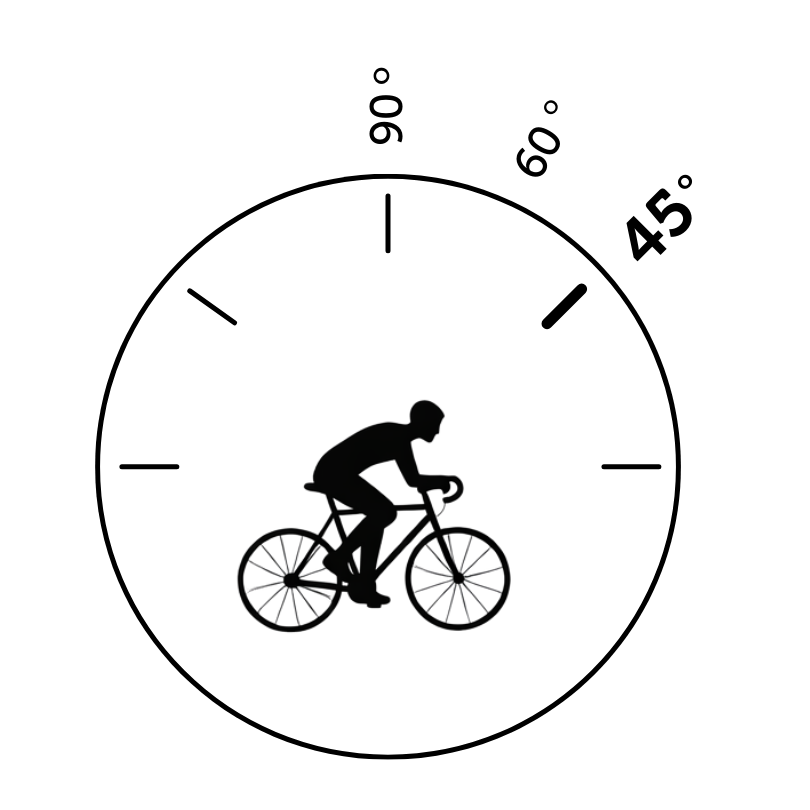 Bei einer Sitzposition von 45° leisten Deine Beine die Hauptarbeit. Diese Haltung ist ideal fürs Rennrad, da sie Deinen Schwerpunkt senkt – so bist Du aerodynamisch unterwegs und kannst schnell an Tempo gewinnen. Rennrad-Fans sollten sich diese Sättel unbedingt ansehen:
