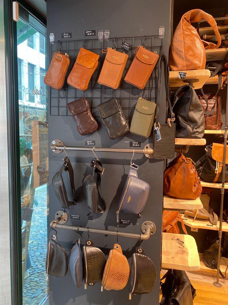 Schau bei unseren Weihnachtsständen vorbei und entdecke unsere lebendige Kollektion von Taschen, Rucksäcken, Geldbörsen, Gürteltaschen, Reisetaschen, Gürteln und anderen Lederaccessoires.