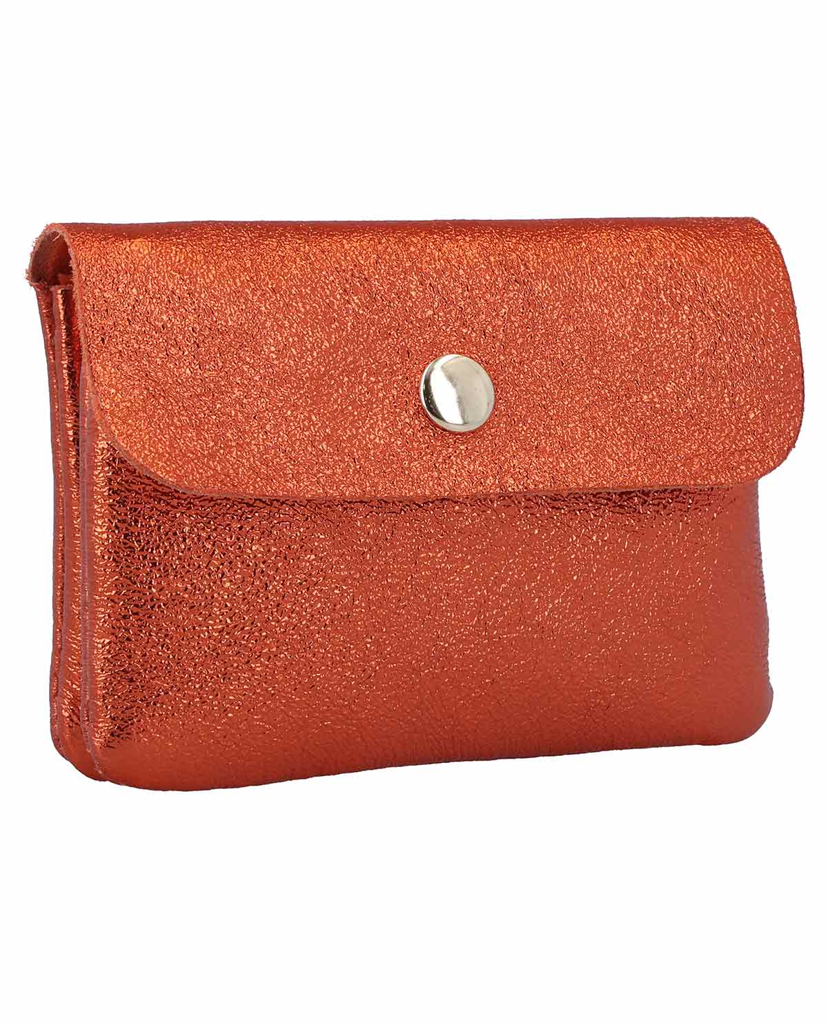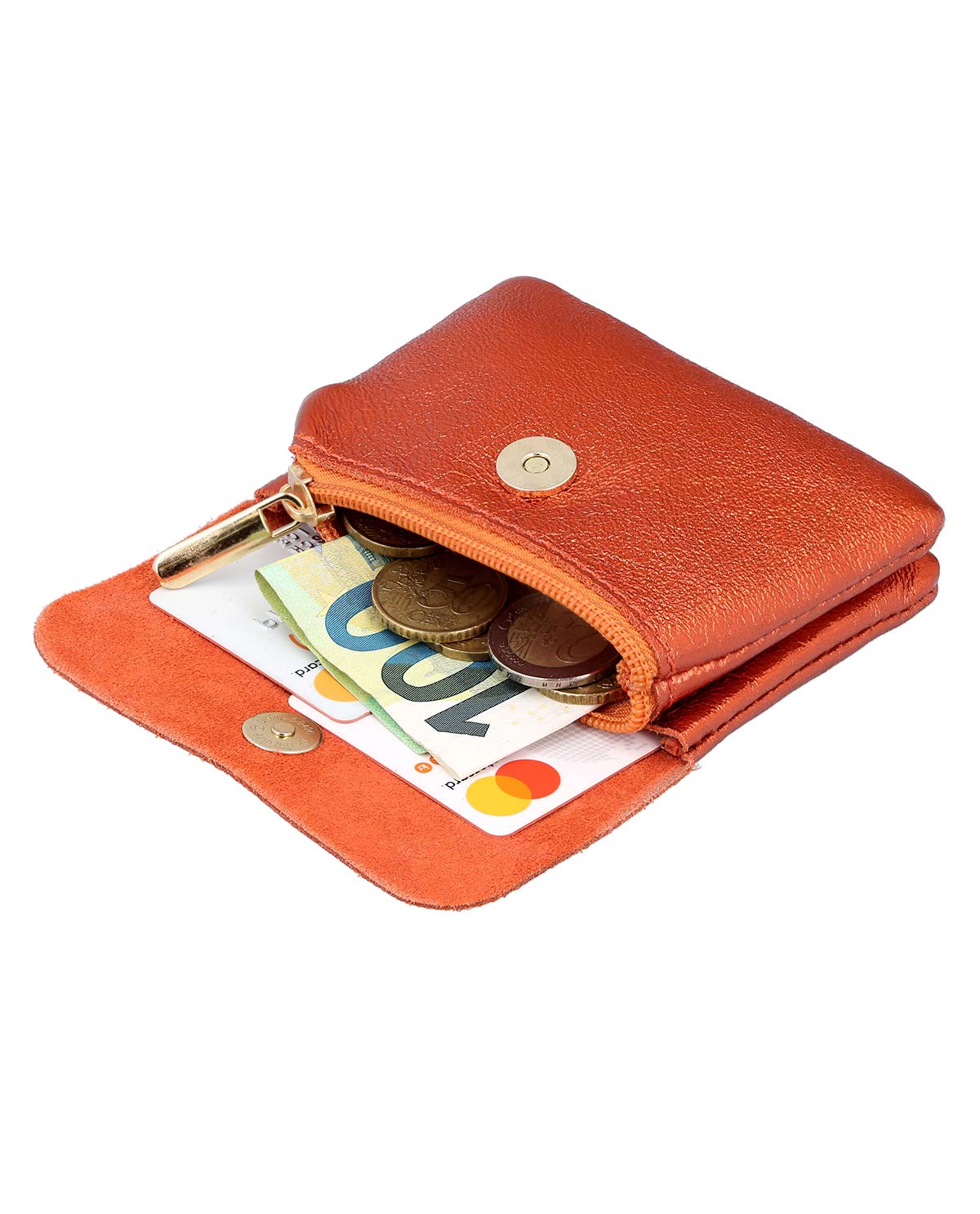 Aufbewahrungstasche Geldbörse Portemonnaie Geldbeutel Organizer klein Ledertasche Damen Hellbraun Glänzend Leder - Made in Italy