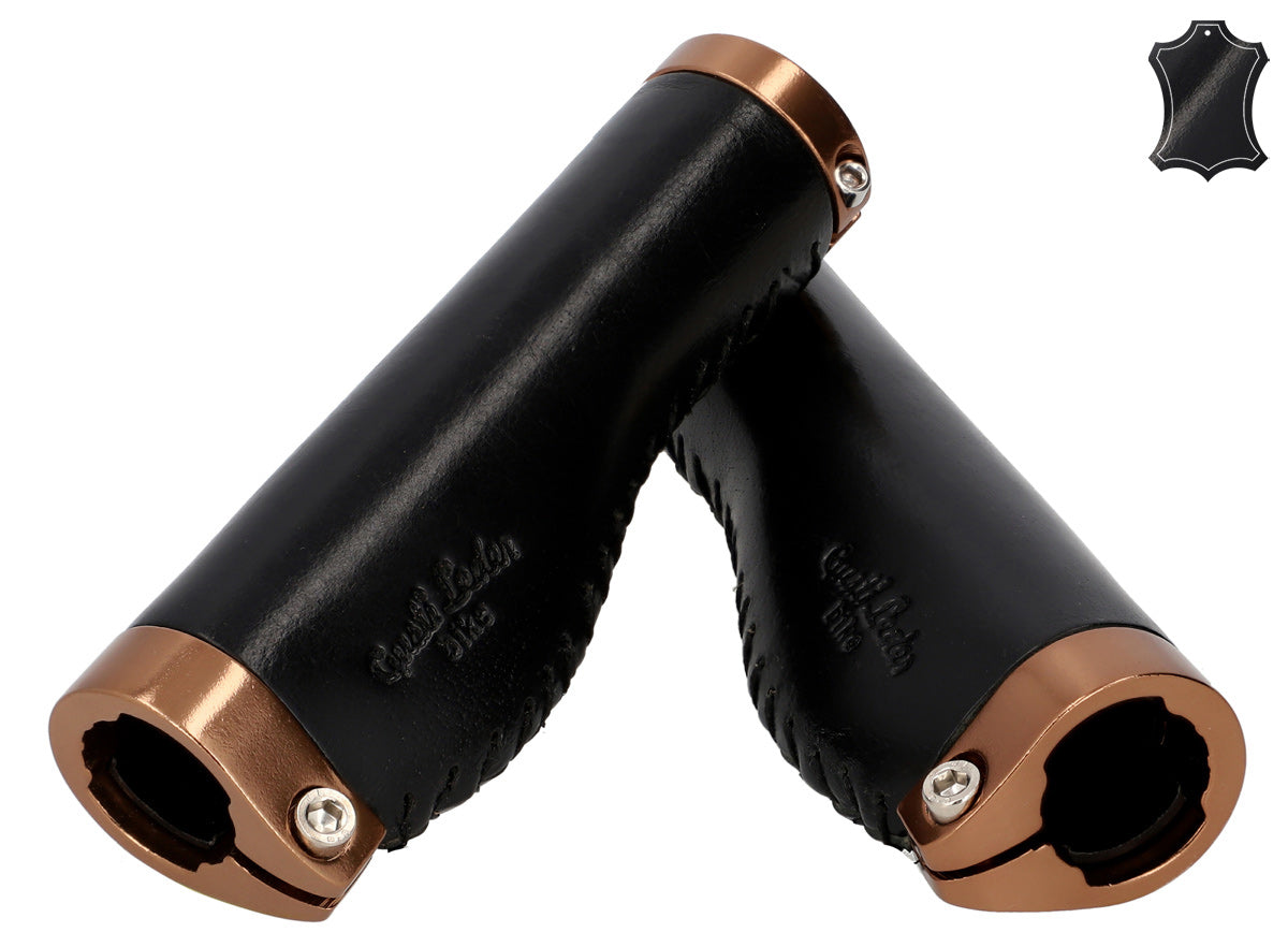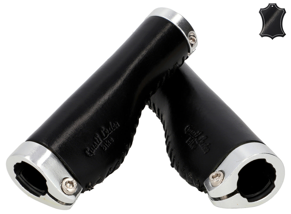 Die ledernen Lenkergriffe "Phil A." passen optisch ebenso hervorragend zu einem trendigen Single-Speed-Rad wie zum klassischen Holland-Bike und lassen sich kinderleicht montieren. Ihr hochwertiges Materialmix aus farbigem Aluminium und 100% Echtleder sorgt für hervorragenden Grip und ein konstant gutes Lenkverhalten. Gleichzeitig passen sie sich ideal der Anatomie Deiner Hände an, federn Stöße und Vibrationen ab und erhöhen so die Griffsicherheit. Nach einer kurzen Einfahrzeit wirst Du den spürbaren Komfort und die angenehme Haptik dieser Griffe nicht mehr missen wollen.