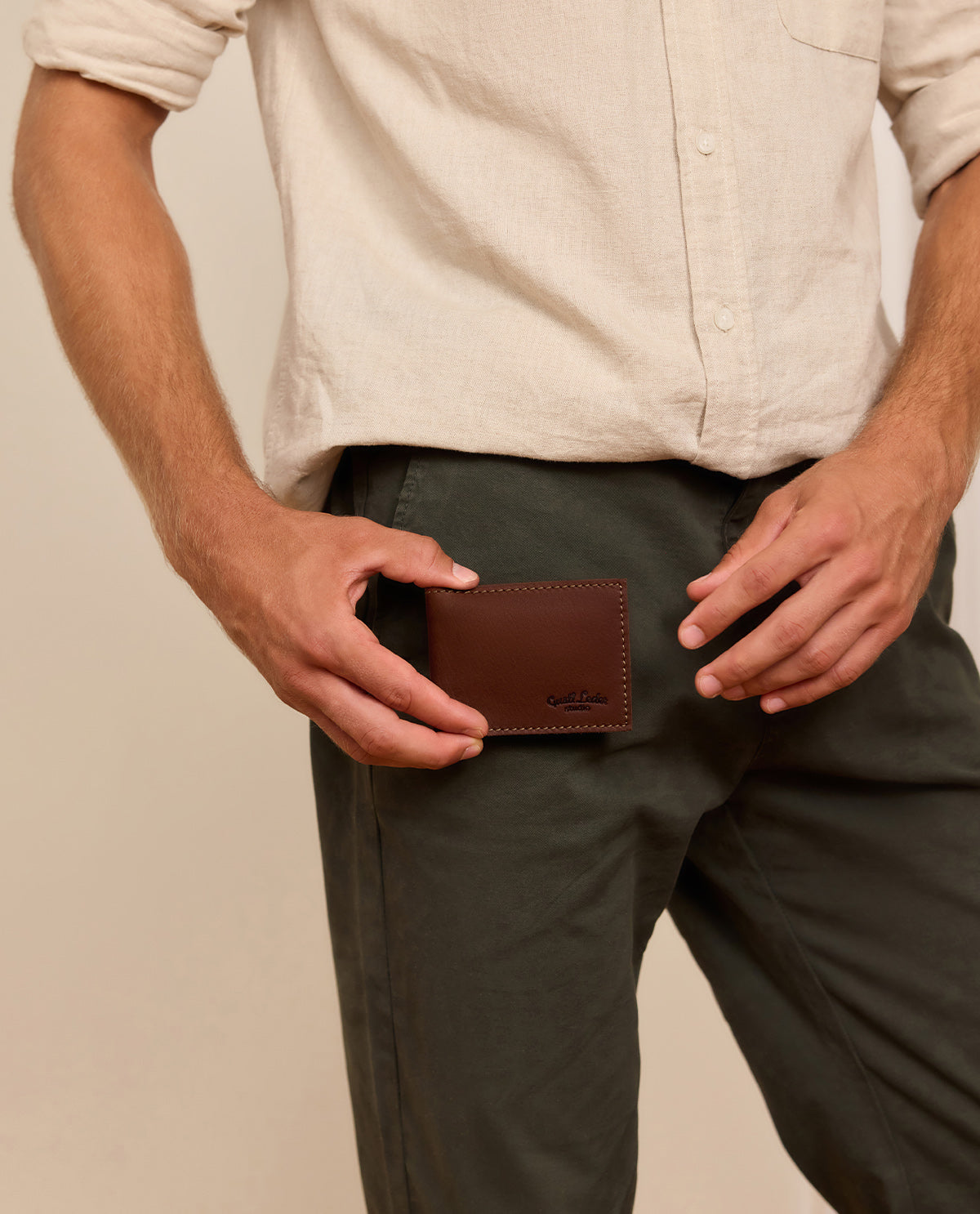 Aus robusten und widerstandsfähigem Rindsleder verfügt „Danny“ im Innenraum über ein großes Hauptfach, diverse Einsteckfächer und ein Münzfach mit Druckknopf. So passen bequem Geldscheine, deine wichtigste Karte und sogar noch Haustürschlüssel rein. Schnell noch in die Tasche gepackt es kann losgehen – mit „Danny“!
