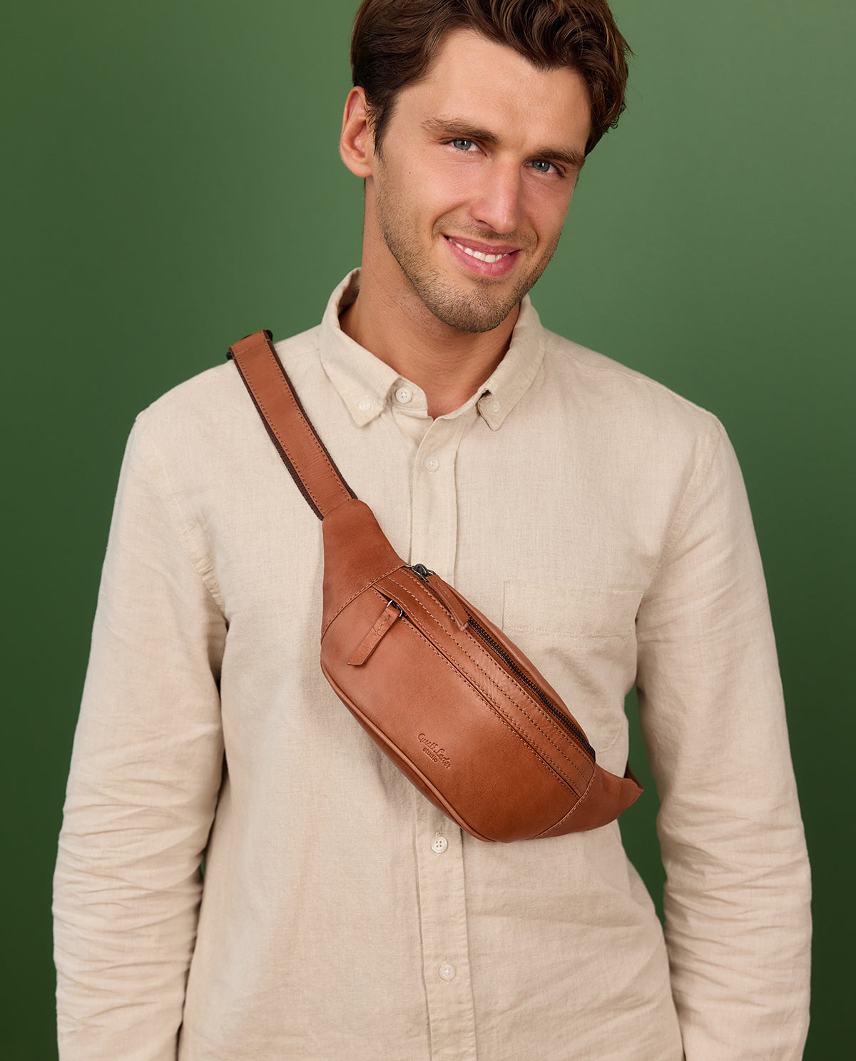 Unsere Gürteltasche „Spencer“ macht nicht viel Aufhebens um sich, sondern überzeugt durch seinen reduzierten unaufgeregten Look, seine Qualität und seine Funktionalität. Das robuste und qualitativ hochwertig verarbeitete Rindsleder verleiht der Gürteltasche die nötige Formstabilität, während seine zahlreichen Reißverschlussfächer genügend Platz für Deine Essentials bieten, ohne die Du auf den ganzen Festivals oder einfach auch beim nächtlichen Getümmel in der Stadt schlichtweg aufgeschmissen wärst. Der erfahrene Festivalgänger und der passionierte Konzertbesucher werden die Qualitäten von "Spencer" wohlwissend zu schätzen wissen. Denn Portemonnaie, Smartphone und Schlüssel passen ganz problemlos hinein - und noch so einiges mehr. Der längenverstellbare Gürtel dieser Bum Bag ist außerdem mit einem stabilen Schnappverschluss ausgestattet, sodass Du "Spencer" wahlweise um die Hüfte oder als Cross Body-Bag tragen kannst. Frei nach dem Motto: "Spencer" ist unkompliziert. "Spencer" ist praktisch. "Spencer" ist einfach gut.