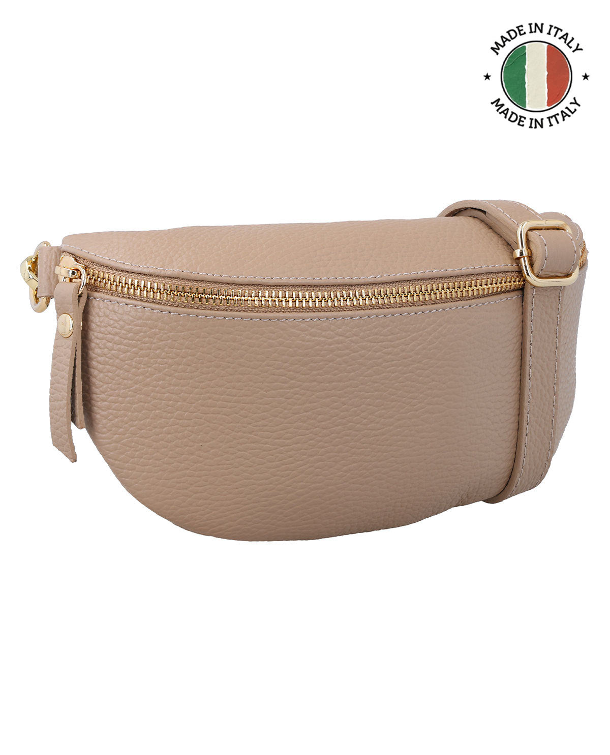 Die "Brinja" Umhängetasche besticht durch ihr elegantes Design und ihre hohe Funktionalität. Mit der markanten, halbrunden Silhouette und dem vollständigen Reißverschluss entlang des oberen Randes bietet sie nicht nur ausreichend Platz für Deine Essentials, sondern auch Sicherheit für all Deine persönlichen Gegenstände. Das hochwertige Leder verleiht ihr eine edle Optik, die sich perfekt in Deinen modernen Alltag einfügt. Im Inneren findest Du zudem das fein eingeprägte "Made in Italy"-Logo, das die Herkunft und Qualität dieser Tasche eindrucksvoll unterstreicht.