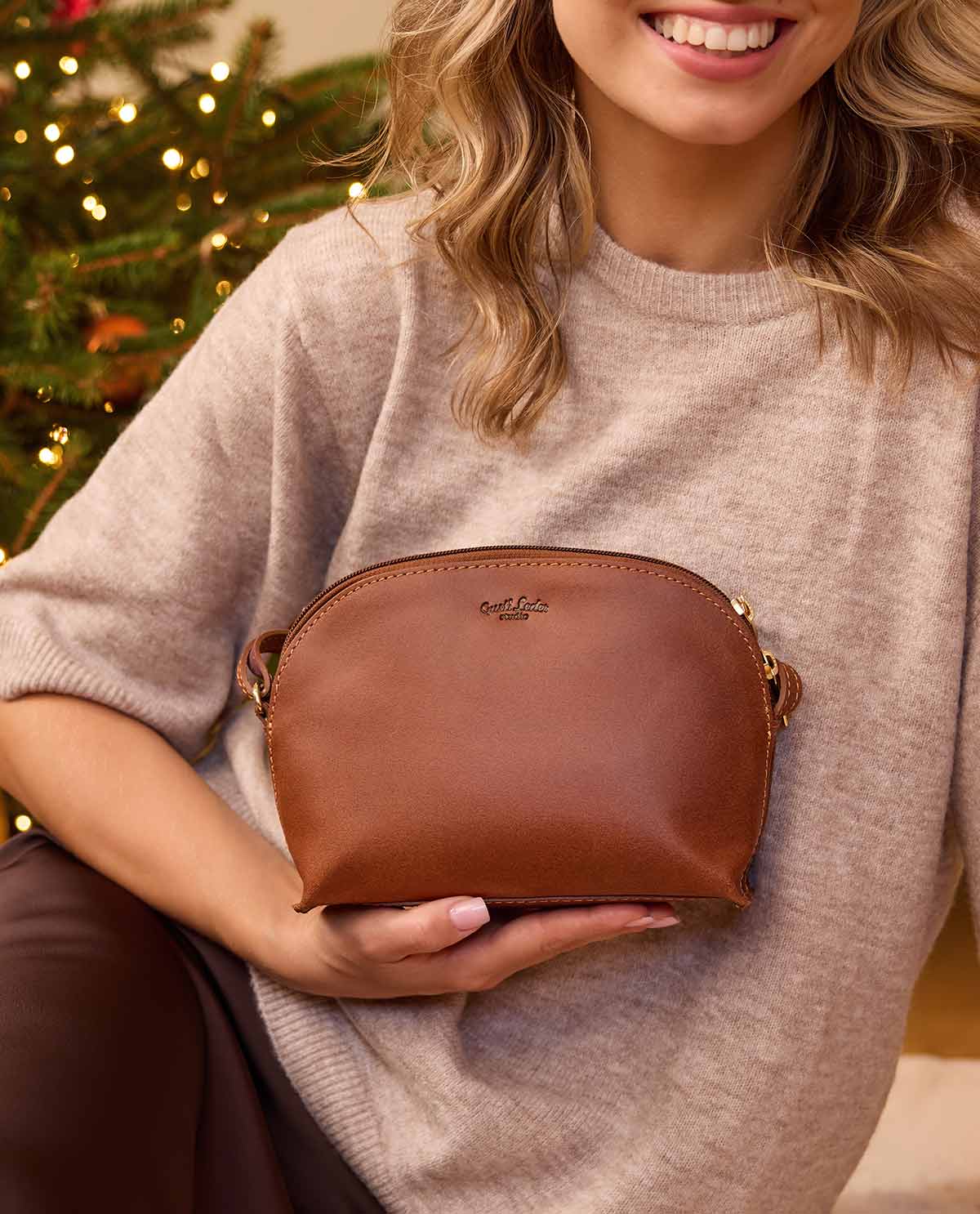 Diese stylische Handtasche aus festem und widerstandsfähigem braunen Rindsleder verbindet durch ihre halbrunde Form mit dem abgeflachten Boden und dem auffälligen goldfarbenen Zwei-Wege-Reißverschluss wie kaum eine andere stilistische Gegensätze miteinander und sorgt so dafür, dass "Tilda" sich immer perfekt kombinieren lässt und zu allen Anlässen und Gelegenheiten passt. Ein zusätzlicher Pluspunkt in Sachen Sicherheit: ein in das gestreifte Innenfutter der Tasche integriertes Reißverschlussfach für Schlüssel, Smartphone oder das kleine Portemonnaie – für noch ein bisschen mehr Sicherheit und optimalen Schutz Deines Habs und Guts vor Langfingern.