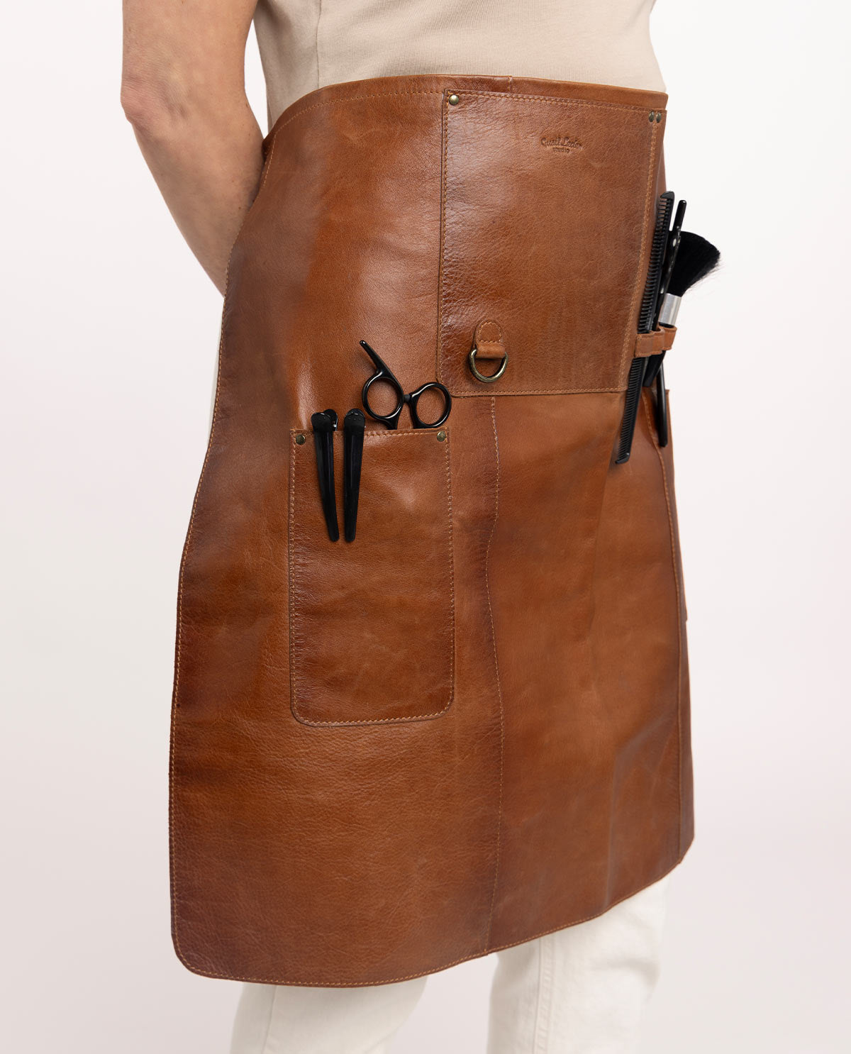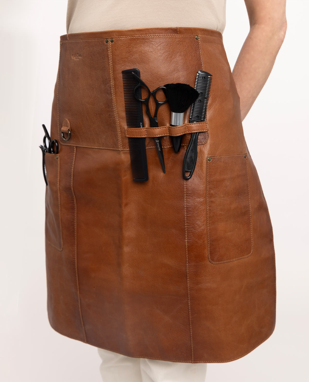 Die "Marica" Friseurschütze ist der ideale Begleiter für alle, die Wert auf Funktionalität und Stil im Arbeitsalltag legen. Gefertigt aus hochwertigem echtem braunem Leder, kombiniert dieser Schütze robuste Materialien mit einem eleganten Design. Die langen Lederseitenriemen ermöglichen es Dir, die Schürze bequem um Deine Taille zu binden, wodurch Du sie perfekt an Deine Körperform anpassen kannst. So hast Du immer einen sicheren Sitz, ganz gleich, wie intensiv Dein Arbeitstag ist. Die "Marica" schützt zudem Deine Kleidung zuverlässig, besonders bei Tätigkeiten wie dem Haare färben oder anderen Friseurarbeiten, bei denen Flecken leicht entstehen können.