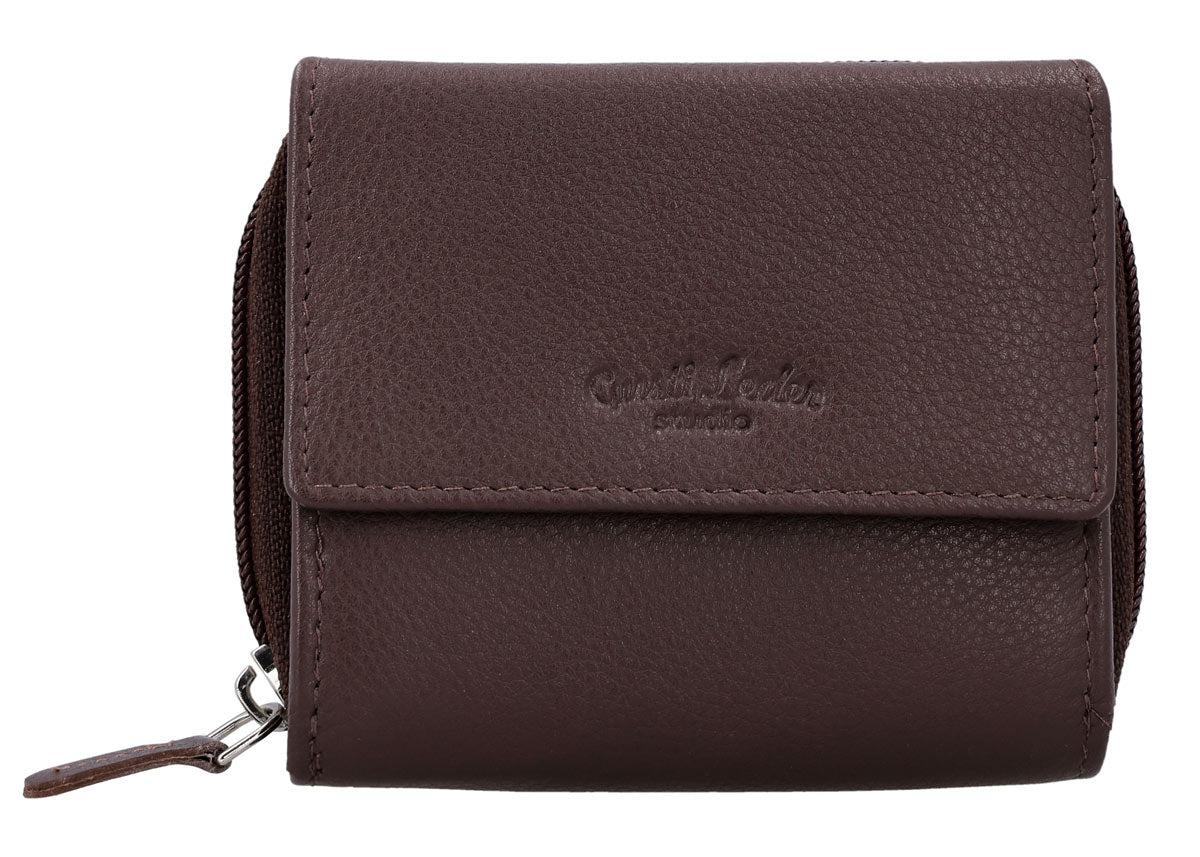 Limited Edition - Portemonnaie Kartenhülle RFID Kartenhalter Kartenetui Brieftasche Geldbeutel Geldbörse klein Damen Braun Leder