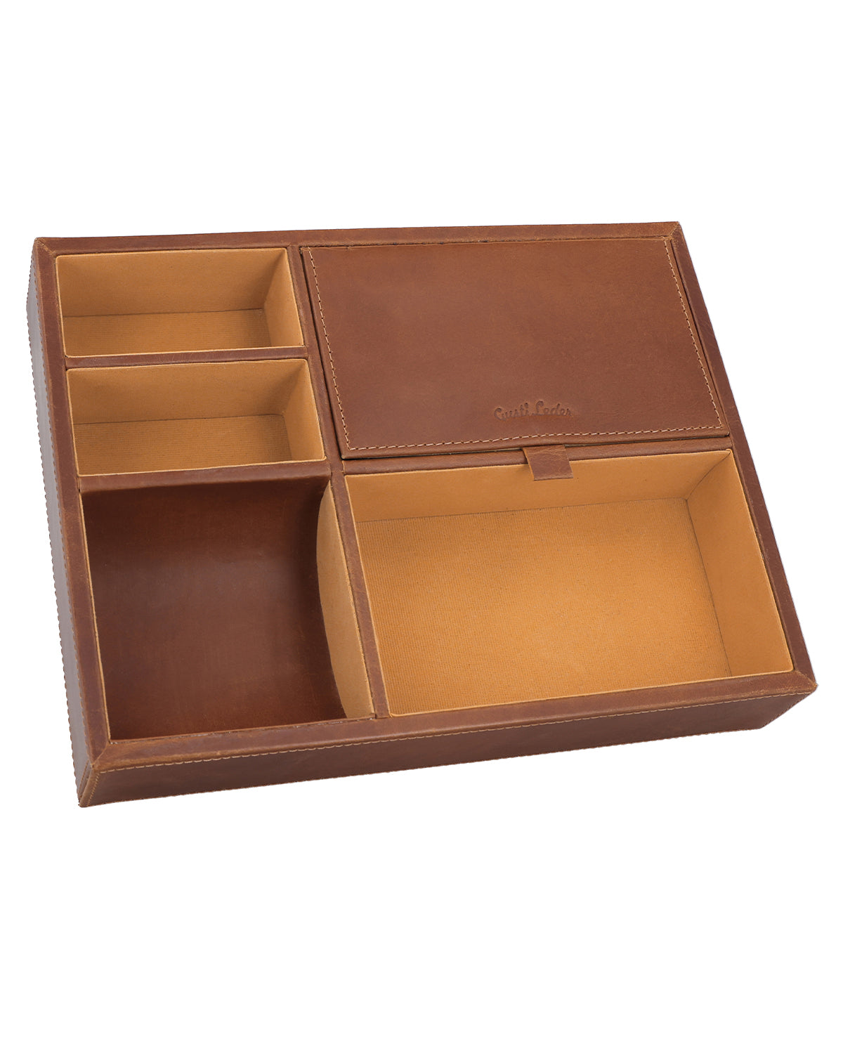 Mit "Bianka" bringst Du Eleganz und Struktur auf Deinen Schreibtisch. Gefertigt aus hochwertigem Leder mit einer glatten Oberfläche, vereint dieser Organizer Funktionalität und zeitloses Design. Die unterschiedlichen offenen Fächer in verschiedenen Größen bieten Dir die Möglichkeit, Stifte, Notizzettel, Brillen oder andere persönliche Gegenstände übersichtlich zu sortieren. So bleibt Dein Arbeitsplatz aufgeräumt, während das edle Leder Deinem Büro eine warme, luxuriöse Note verleiht – perfekt für alle, die Organisation mit Stil verbinden möchten.
