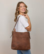 Die Handtasche "Moje" in edlem Braun kombiniert stilvolles Design mit durchdachter Funktionalität und ist die perfekte Begleiterin für jede Frau. Der verstellbare Schulterriemen mit Messing-Schnalle ermöglicht es Dir, die Tasche ganz nach Deinen Wünschen zu tragen – bequem über der Schulter oder quer über den Körper. Mit dem praktischen magnetischen Verschluss wird der Inhalt sicher verstaut, während die durchdachte Innenaufteilung für eine perfekte Organisation sorgt. Das Laptopfach bietet ausreichend Platz für Deinen Laptop und schützt ihn zuverlässig. Zwei weitere offene Fächer eignen sich ideal für Dein Handy, Ladegerät oder andere wichtige Kleinigkeiten.