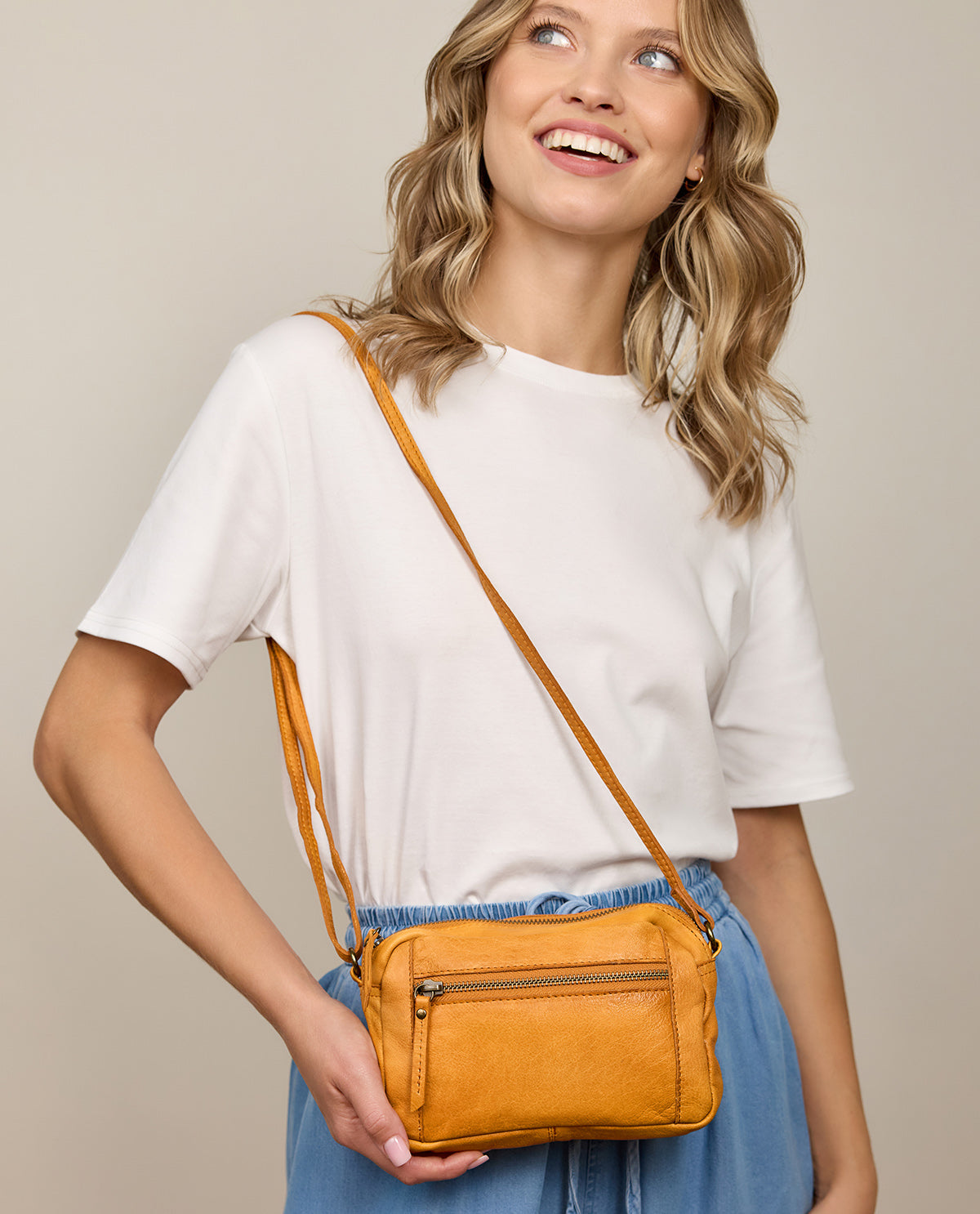 Durch das weiche und zugleich widerstandsfähige Rindsleder bekommt die Handtasche erst den absolut angesagten Vintagelook im casual-sportiven Charme, der sich jedem Outfit auf ganz subtile Weise anpasst.