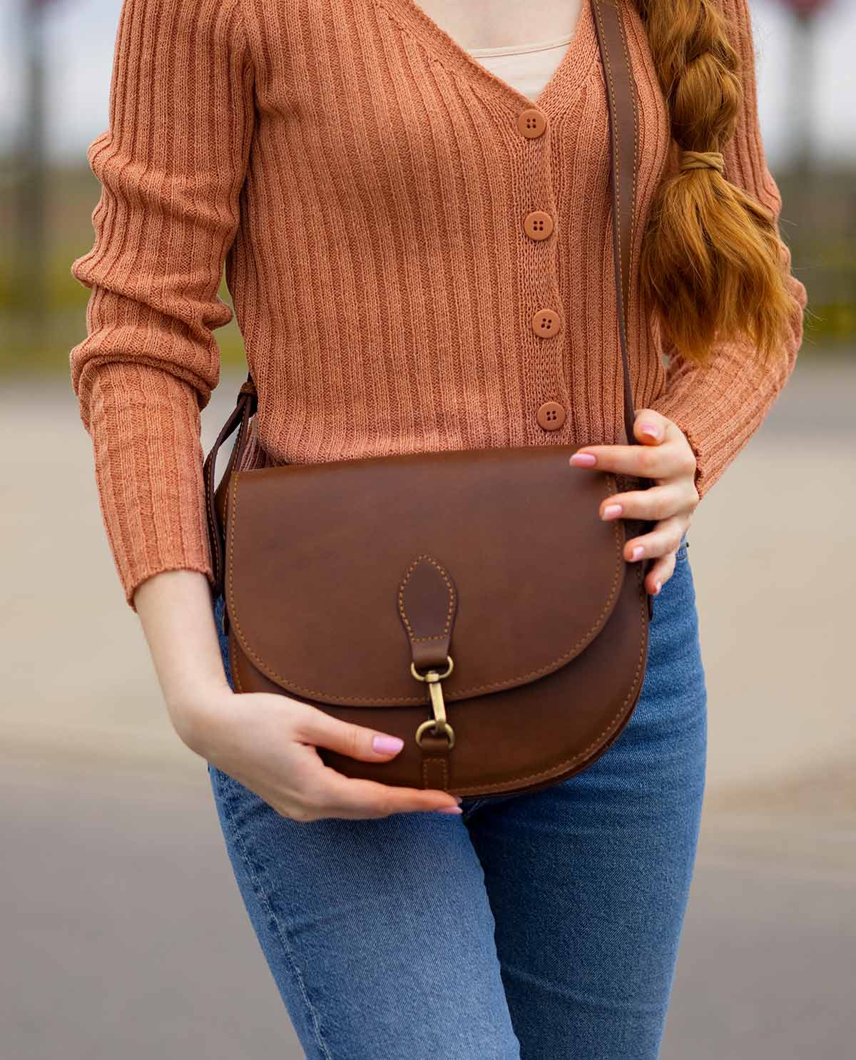 Umhängetasche Handtasche Ledertasche Damen Berliner Großstadt Flair Braun Leder